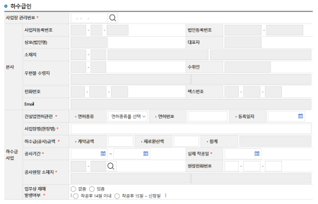 - 하수급 공사명, 공사금액, 공사기간: 해당 정보를 입력합니다.